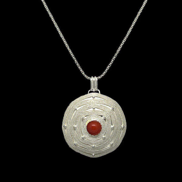 Ciondolo Filigrana Argento e Corallo Rosso – Bottone Sardo