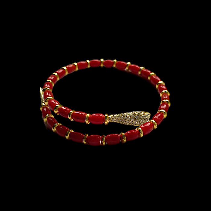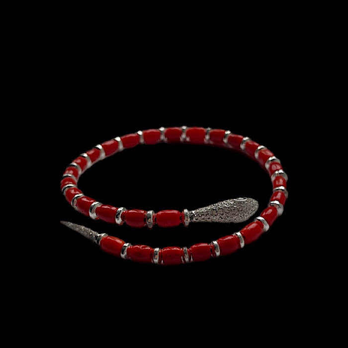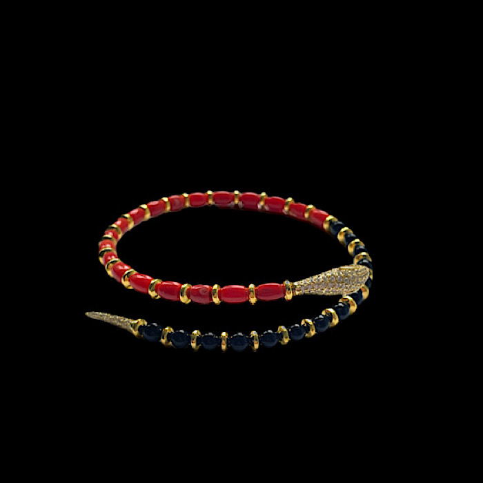 Bracciale semirigido in corallo Sardegna autentico e onice, a forma di serpente.