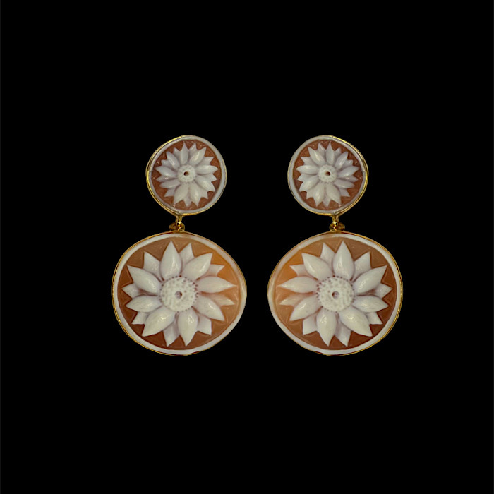 Realizzati in Cammeo inciso a mano su conchiglia sardonica e montati su Argento 925 placcato oro 18kt