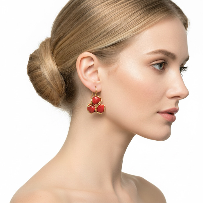 Orecchini Corallo Rosso Sardegna- 3 Stones