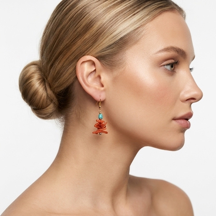 Orecchini Corallo rosso Sardegna e Turchese – Under the sea